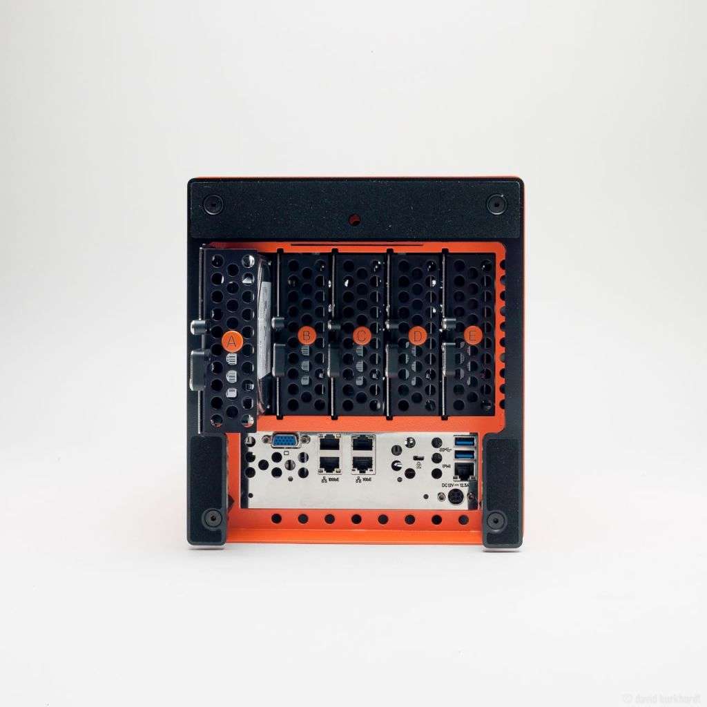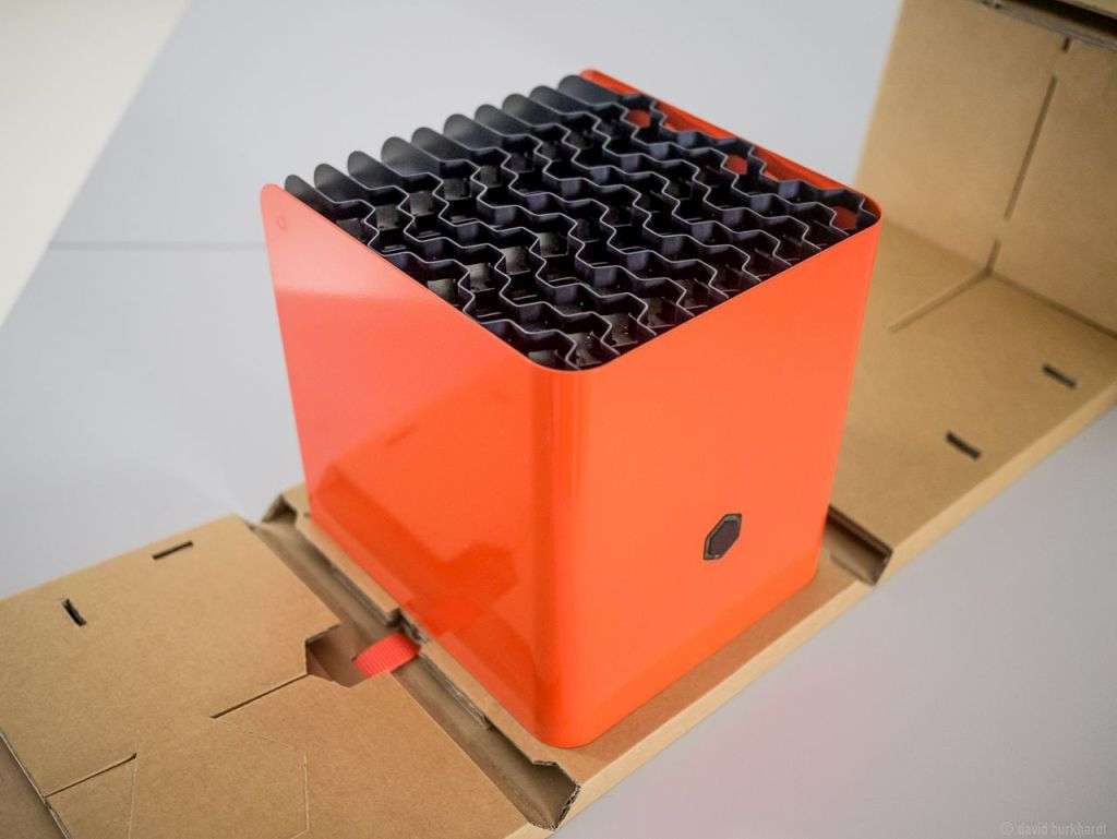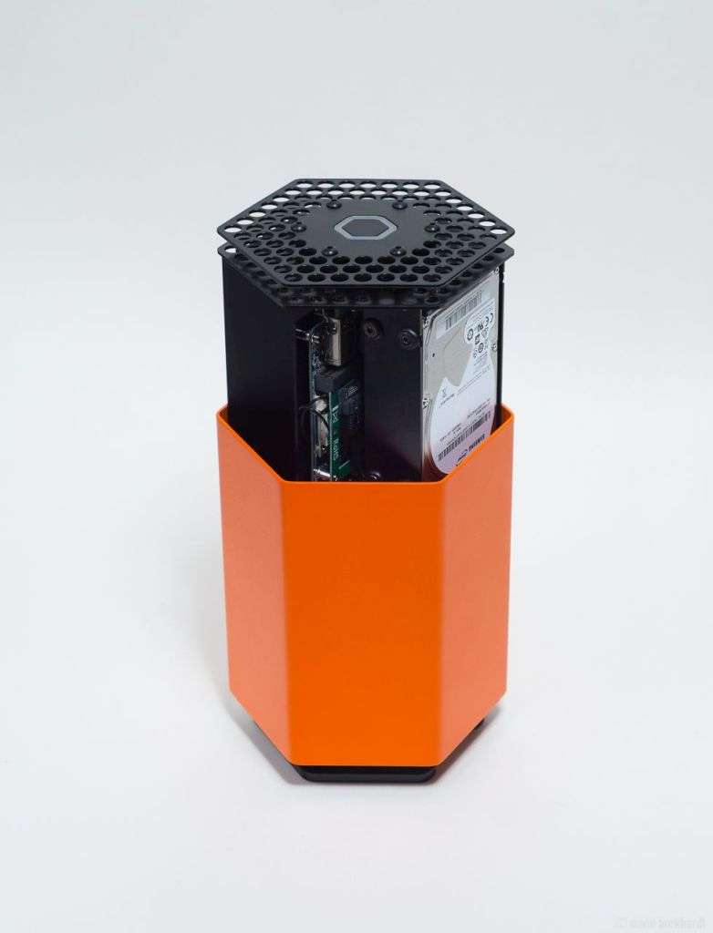 The device features passive, fanless cooling, combined with a one button physical interface. Status information is given by a luminous ring around the button